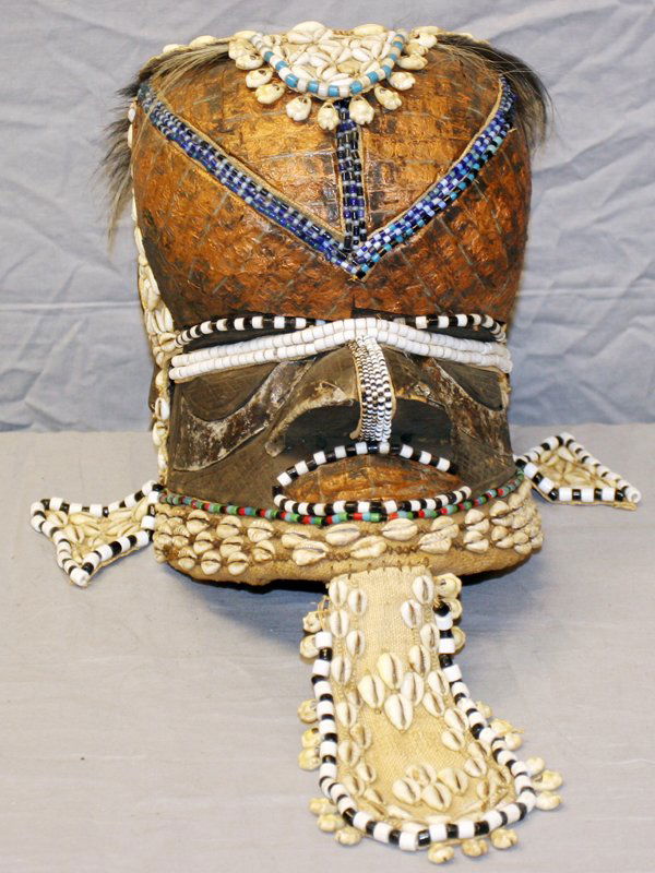Masks of royal temple guardians with imaginary beasts on their heads. Impressive african mukenga helmet mask kuba culture republic congo africa origin $425.0. These striking masks are wonderfully decorated with geometrical surface designs in dazzling contrasts of pattern and texture. The hat is embroidered with cowrie shells and glass beads in colorful patterns. African art beaded kuba helmet mask is from dr congo.